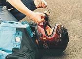 Die Helmabnahme sollten Sie, wenn möglich, zu zweit vornehmen.